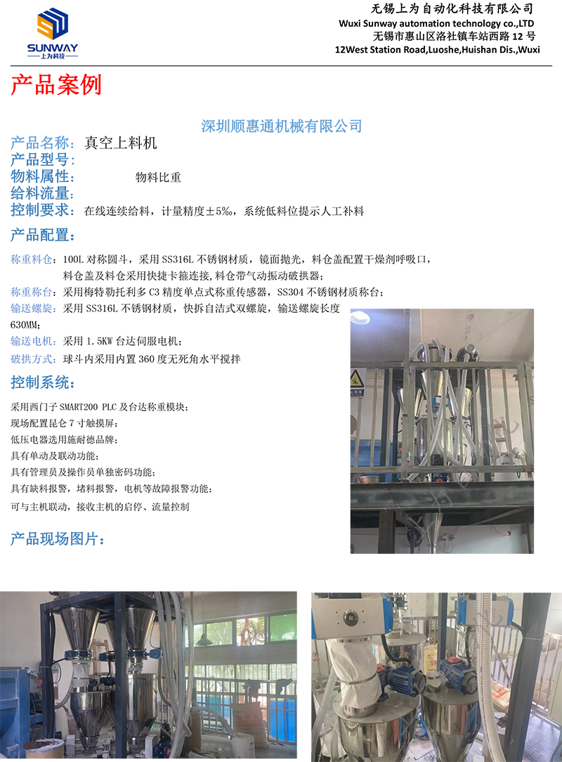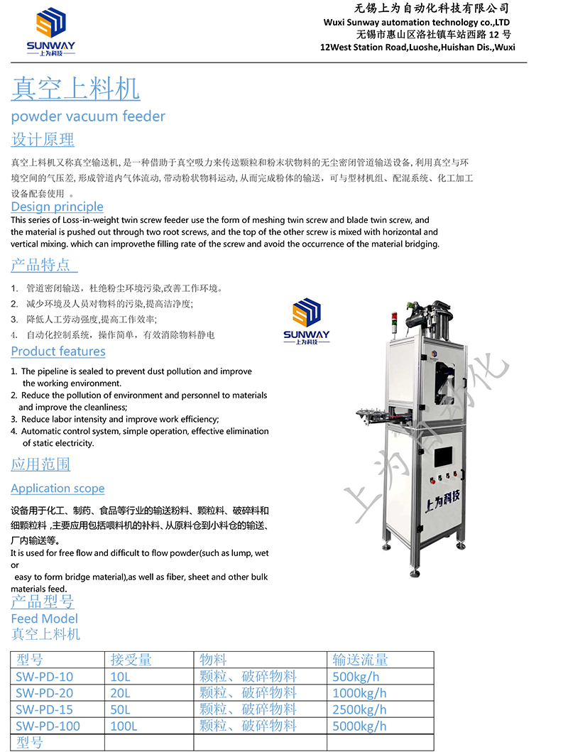 產(chǎn)品概述: 無錫上為自動化科技有限公司是一家專業(yè)生產(chǎn)喂料機、失重稱、失重式喂料機、失重式液體給料機、強制喂料機、體積式喂料機、集中供料系統(tǒng)、配料系統(tǒng)等產(chǎn)品和服務(wù)的專業(yè)廠家,其中失重式喂料機品質(zhì)優(yōu)秀、價格合理,集中供料系統(tǒng)技術(shù)先進(jìn)、服務(wù)保證。咨詢熱線:18751575268